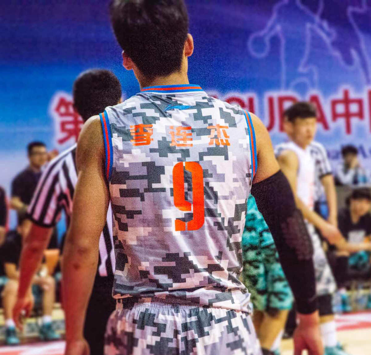 守如長城攻如風(fēng),運(yùn)傳投突樣樣能。此去峰峰會高手,球場之上逞英雄!搶斷突破似閃電,急停三分畫長虹。團(tuán)結(jié)協(xié)作無敵手,四方強(qiáng)敵